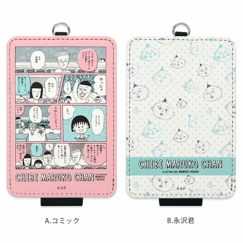 ちびまる子ちゃん ICカードケース 漫画 コミック柄 パスケース ストラップ付き 便利グッズ キャラクター雑貨 さくらももこ 野口さん ピンク 永沢君 ホワイト 大人女子